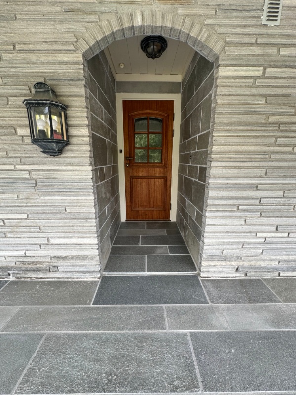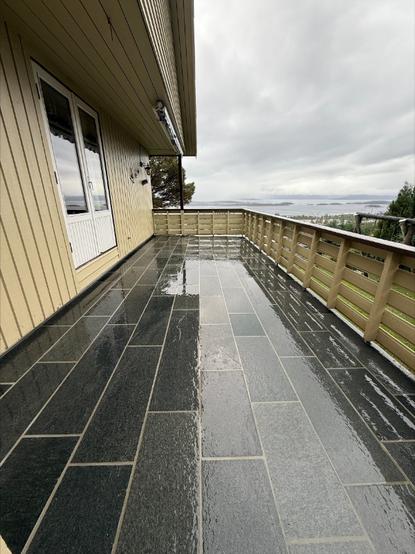 VI legger skifer i trapper, terrasser, på mark med støt underlag og med fug mellom skiferhellene. Skifer på fasade og hugget skifer på gulv. Vi har opparbeidet oss stor kunnskap innen faget. Vi leverer også skifer.